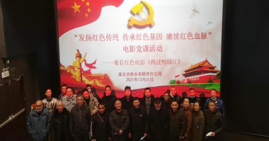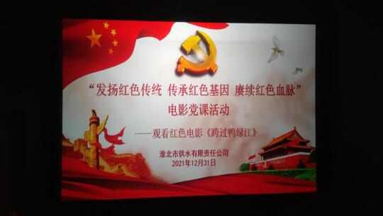 為進一步把黨史學習教育走深走實,傳承革命精神,2021年12月31日,供水公司組織黨員開展“發(fā)揚紅色傳統(tǒng),傳承紅色基因,賡續(xù)紅色血脈”電影黨課活動,集中觀看紅色電影《跨過鴨綠江》。