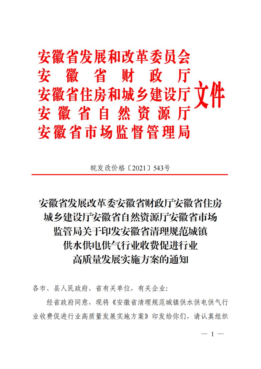 安徽省發展改革委安徽省財政廳安徽省住房 皖發改價格〔2021〕543號