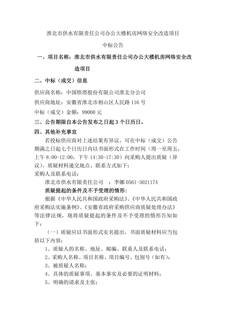 網絡安全改造中標公告