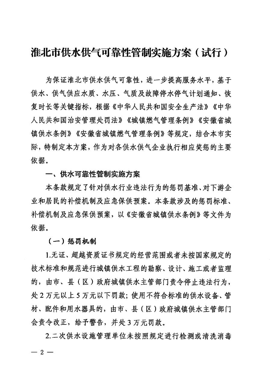 關(guān)于印發(fā)《淮北市供水供氣可靠性管制實施方案(試行)》的通知