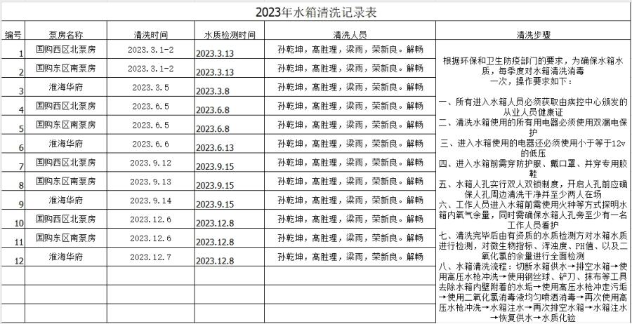 2023二次供水水箱清洗臺賬