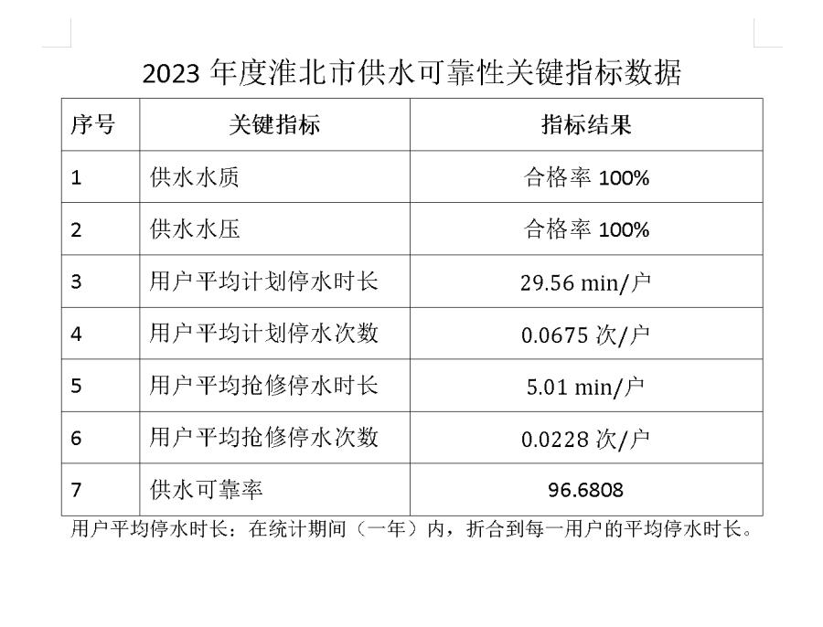 2023年度淮北市供水可靠性關(guān)鍵指標(biāo)數(shù)據(jù)