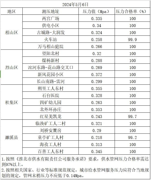 2024年5月6日水壓信息公開