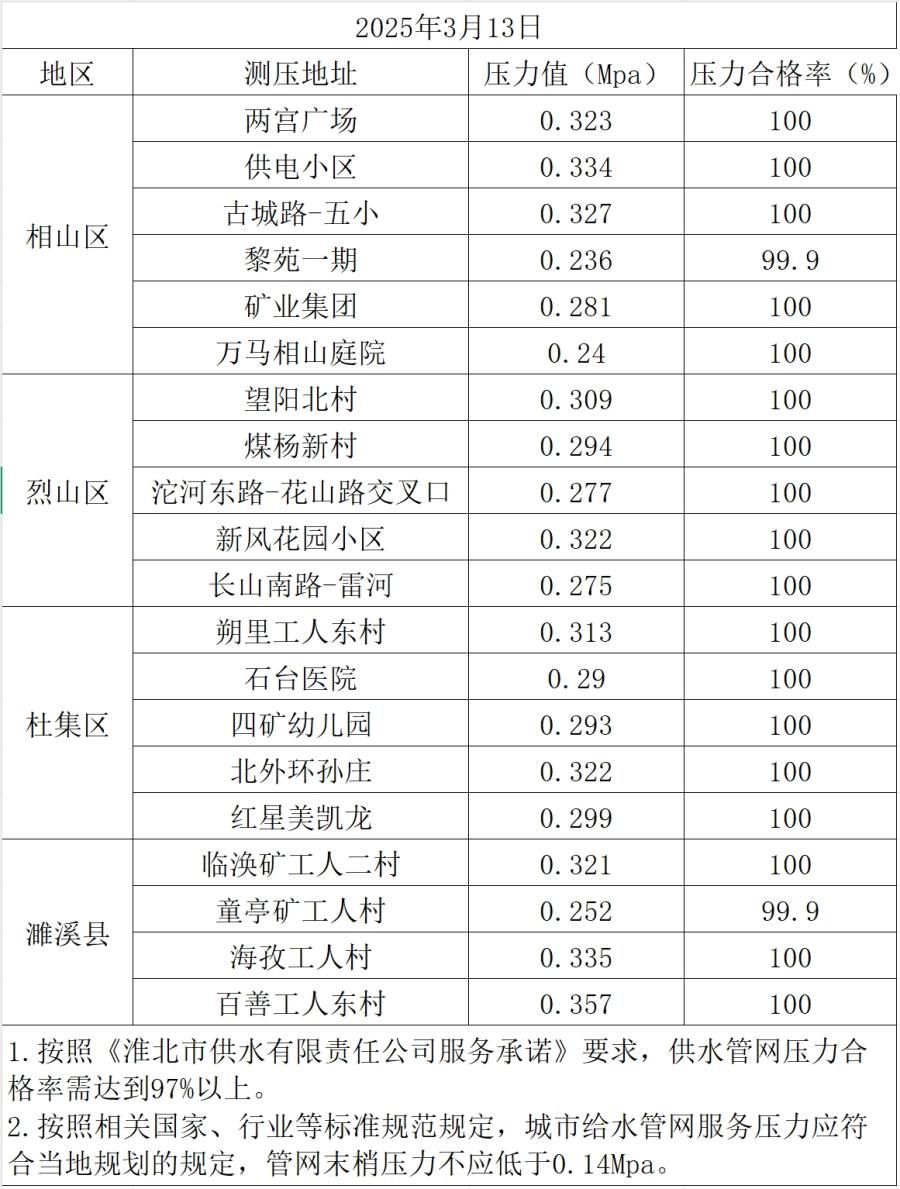 2025年3月13日水壓抽測公示